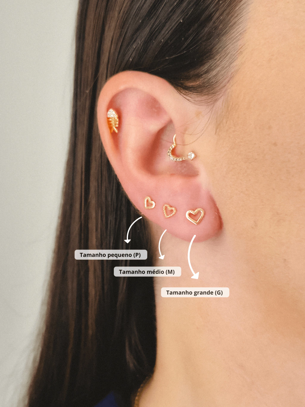 Esse brinco você pode usar no 1°, 2° e 3° furo.