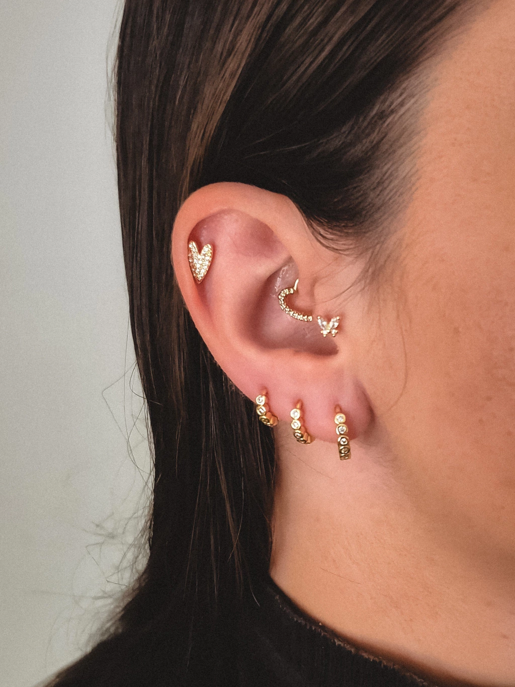Esse piercing pode ser usado nas seguintes perfurações: hélix, tragus ou flat.